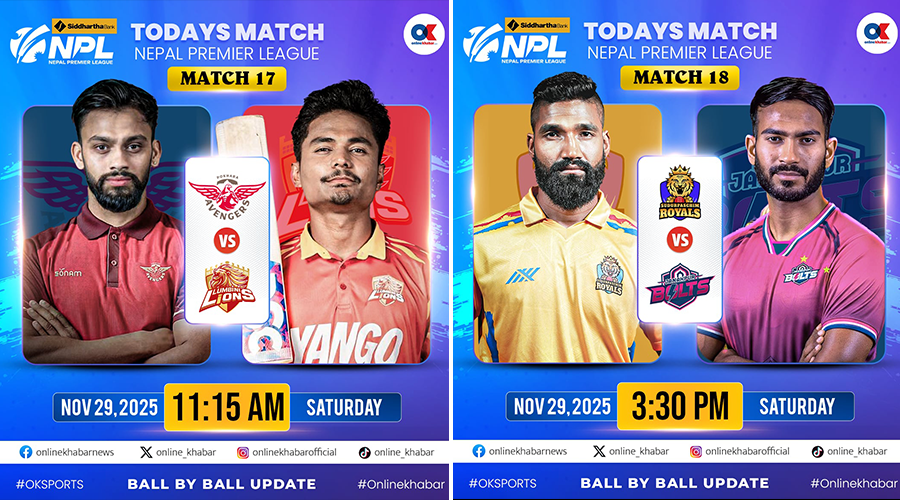 काठमाडौं – सिद्धार्थ बैंक नेपाल प्रिमियर लिग (एनपीएल) २०२५ अन्तर्गत आज सुपर स्याटरडे दुई खेल हुँदैछन् । कीर्तिपुरस्थित टीयू अन्तर्राष्ट्रिय क्रिकेट रङ्गशालामा भइरहेको लिगमा लुम्बिनी लायन्स र पोखरा एभेन्जर्सबीच पहिलो खेल हुनेछ । यो खेल बिहान सवा ११ बजे सुरु हुनेछ । अंकतालिकामा बटम हाफमा रहेका लुम्बिनी र पोखरा दुवैका लागि आजको खेल महत्वपूर्ण हुनेछ । प्लेअफ होडमा कायम रहन दुवै टोली जितको लक्ष्यमा हुनेछन् । लुम्बिनीले पहिलो खेल जितेपछि लगातार तीन खेलमा हार व्यहोरिसकेको छ । त्यसैले आजको खेलमा त्यो हारको यात्रा ब्रेक गर्न चाहन्छ । लुम्बिनी र पोखराको समान २ अंक छ । तर लुम्बिनीले चार खेल खेलिसक्दा पोखराले ३ खेल मात्र खेलेको छ । सुरुवाती दुई खेलमा पराजित भएको पोखराले पछिल्लो खेलमा साविक विजेता जनकपुर बोल्ट्सलाई हराएर लयमा फर्केको संकेत गरेको छ । यसैगरी दिउँसो साढे ३ बजे हुने खेलमा साविक उपविजेता सुदूरपश्चिम रोएल्स र साविक विजेता जनकपुर बोल्ट्सबीच प्रतिस्पर्धा हुनेछ । यी दुई टोली यस सिजन ठिक विपरित स्थितीमा छन् । सुदूरपश्चिम लगातार चार खेल जितेर एक्लो अपराजित टोलीको रुपमा छ भने जनकपुरले यस सिजन खेलेको सबै तीन हार हारेर जितविहिन छ । सुदूरपश्चिम यस सिजन बलियो देखिएको छ र प्लेअफ नजिक पुगेको छ । सुदूरवश्चिम ४ खेलबाट ८ अंक जोडेर शीर्ष स्थानमा छ । जनकपुरका लागि प्लेअफको सम्भावना कायम राख्नका लागि पनि आजको खेल जित्नैपर्ने बाध्यता छ ।साभार : अखप